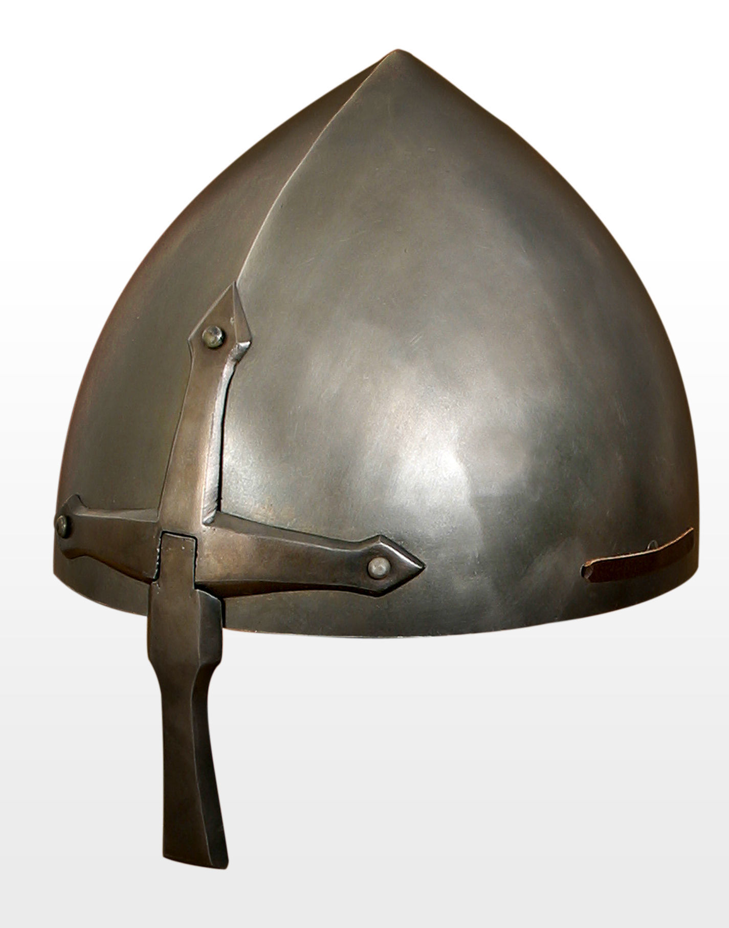 8.) Spangenhelm (Spätantike / Frühmittelalter) (hier sind im Unterschied zum Nasalhelm die Metallplatten an die außen liegenden Spangen genietet)